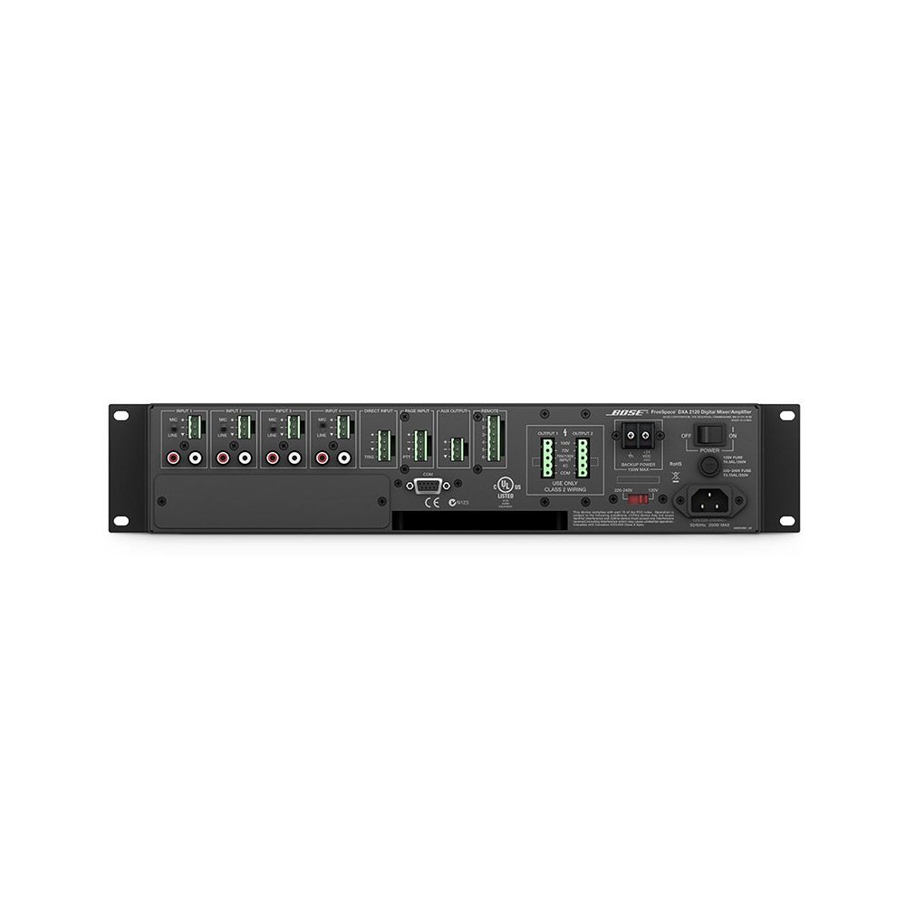 Bộ khuếch đại kỹ thuật số Bose FreeSpace DXA 2120 có thiết kế 6 đầu vào và 2 đầu ra bao gồm: cung cấp xử bộ xử lý tín hiệu, mixer, định tuyến, phân trang và khuếch đại hai kênh cho các ứng dụng đã cài đặt. Nó cung cấp 3 chế độ hoạt động linh hoạt bao gồm: mixer, âm thanh Mono, âm thanh Stereo được cấu hình dễ dàng bằng cách sử dụng các điều khiển trên bảng điều khiển phía trước.