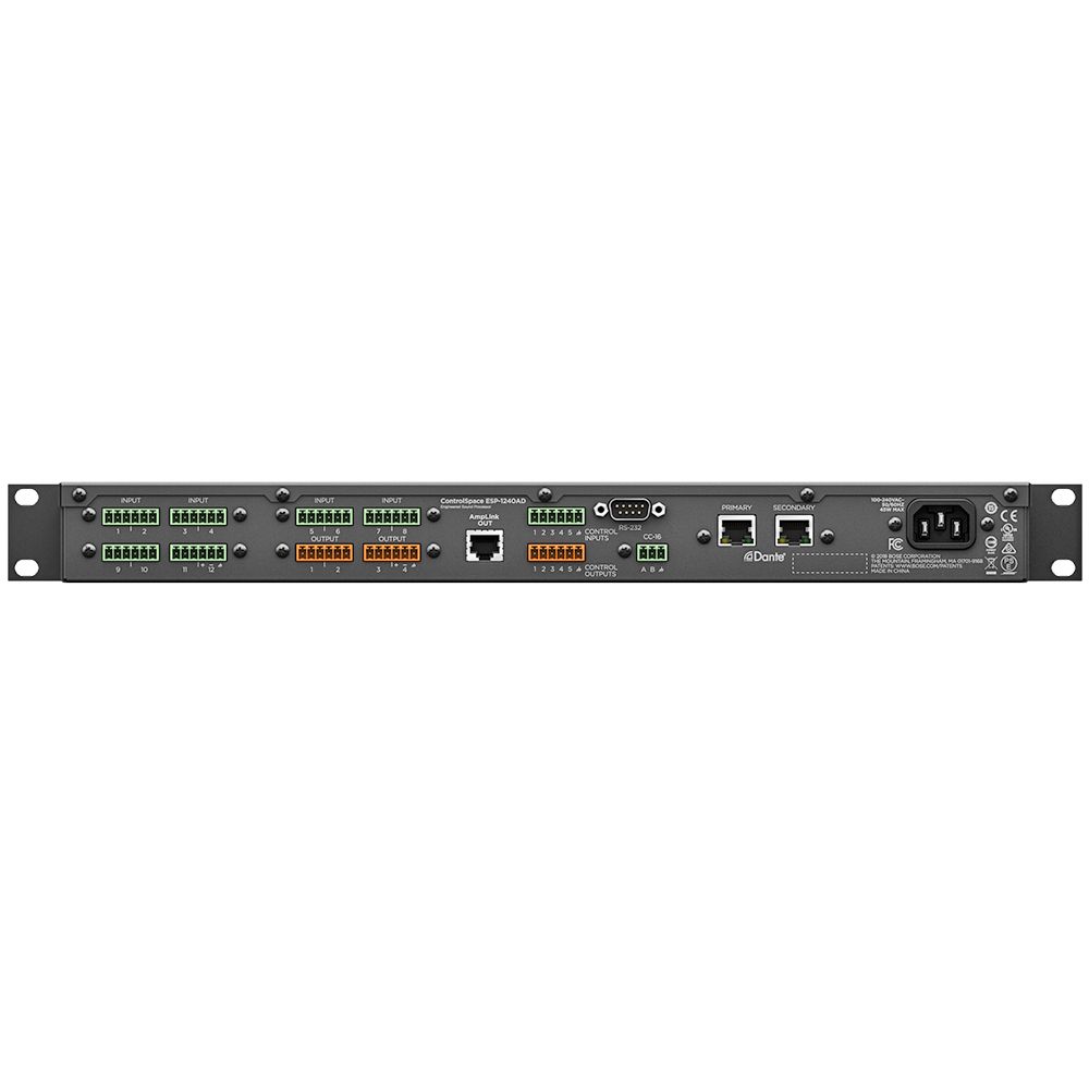 Một DSP kiến trúc mở, bộ xử lý âm thanh được thiết kế bởi Bose: Bộ xử lý tín hiệu âm thanh kỹ thuật số Bose ControlSpace ESP-1240AD - Engineered Sound Processor được thiết kế cho nhiều ứng dụng – từ các dự án nhỏ, khép kín đến các hệ thống lớn, được nối mạng. Nó có tính năng kết nối mạng âm thanh Dante ™, I / O âm thanh tương tự 12×4, đầu ra Bose AmpLink và kết nối Ethernet RJ-45 mặt trước để cấu hình và giám sát cục bộ. Được thiết kế để có hiệu suất chính xác, ControlSpace ESP-1240AD cung cấp xử lý tín hiệu số tiên tiến với chuyển đổi âm thanh 48 kHz / 24 bit, độ trễ thấp và hoạt động tiếng ồn cực thấp.